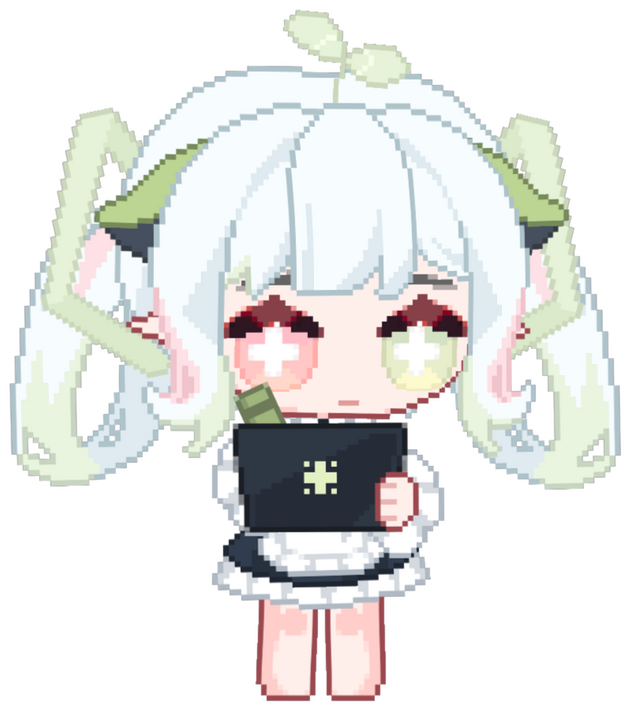(see reference sheet for more notes).- Outfit change is OK, she likes comfy clothing but ultimately will wear anything. Like a doll!- Her chest size is strictly small/medium, NOT FLAT. Please don't give her huge knockers.- Please do not forget any of the details listed on the reference sheet. Damage and tear is optional but preferred.- Do not give her a regular right (right for her, left for front facing viewer) eye unless it's her un-awakened state OR specifically requested by me.- Have fun with glitches, computer elements and electronics. She is charged via her ahoge port.- I'd love it if you shared your fan art with the tag #bugallery on social media!